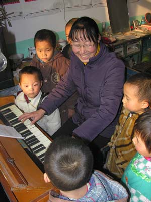 在学生的眼里,她既是老师又是妈妈。学生的衣服脏了,她给他们洗;学生们饿了,她生火做饭;学生生病,她带他们打针吃药;天气冷了,她给他们添置衣服。