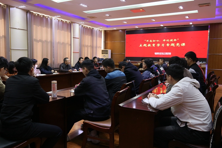11月20日上午,学院党委书记康全玉在学院201会议室举行“不忘初心、牢记使命”主题党课,学院学生党员代表30余人参加。