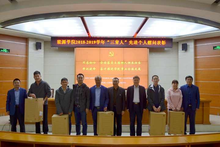 会议伊始,郭文兵宣读了“三育人”先进个人名单,并一一向大家介绍了“三育人”先进个人在师德和工作上做出的成就,肯定了他们在教学和科研一线工作上的努力。最后学院领导为“三育人”先进个人慰问表彰,颁发纪念品,并合影留念。