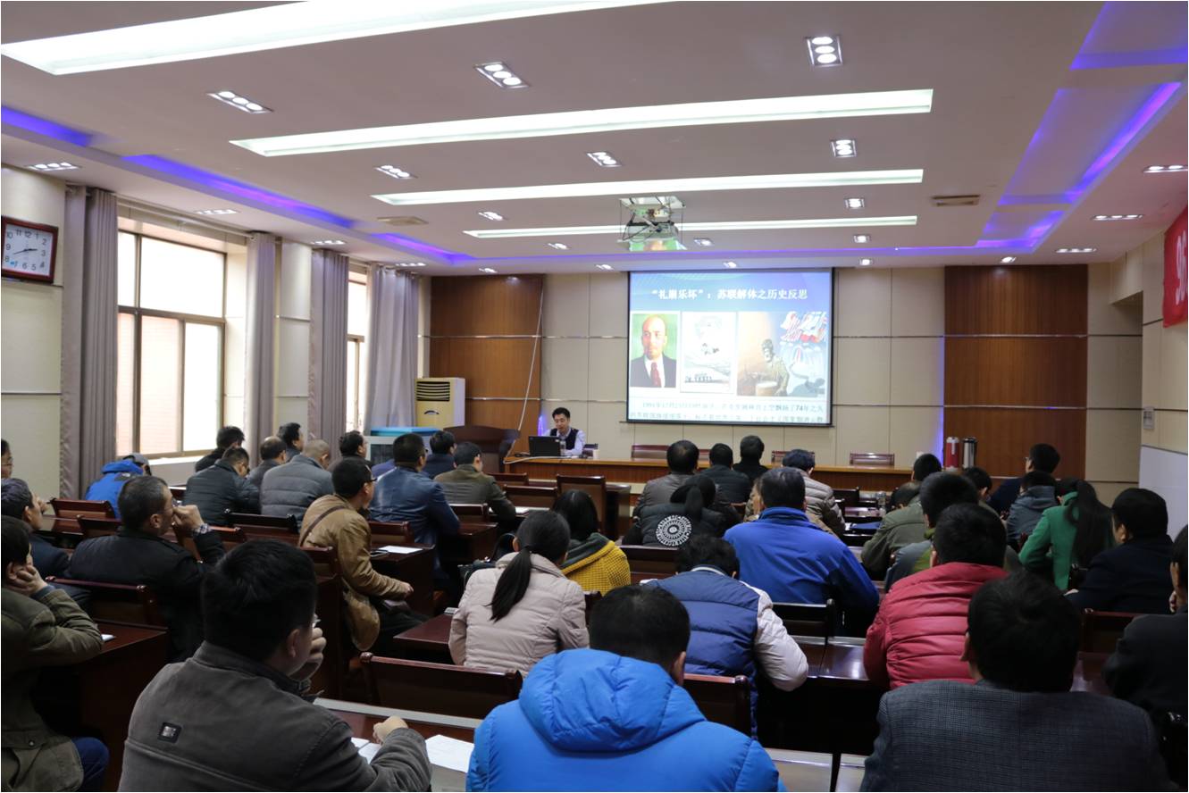 11月15日下午,应新葡萄8883官网AMG邀请,校宣讲团专家、马克思主义学院杨晓军博士在能源楼201会议室作了题为“讲政治守纪律懂规矩,做合格的‘四有’教师”的“两学一做”专题讲座。该院领导与近百名教师参加讲座。讲座由该院党委副书记支光辉主持。 支光辉首先代表全院师生欢迎校宣讲团专家的到来,并介绍了杨晓军的学术成就和基本情况。讲座上,杨晓军以苏联解体为背景,强调了讲政治、守纪律与懂规矩的重要性,从讲政治守规矩懂纪律的深刻背景、科学内涵以及教师要求三方面着重讲解。他结合社会热点阐述了讲政治是“总开关”、守纪律是“高压线”、懂规矩是“最底线”的科学内涵。在教师要求方面,他指出,教师对学生要有理想信念、道德情操、扎实学识和仁爱之心。杨晓军的讲座幽默风趣、通俗易懂,受到一致好评。 支光辉号召全院教师要学习本次讲座的重要内涵,在以后教学过程中,要做智师、仁师、勤师和情师,同时,要以“四有”的标准严格要求自己,推动学院快速发展