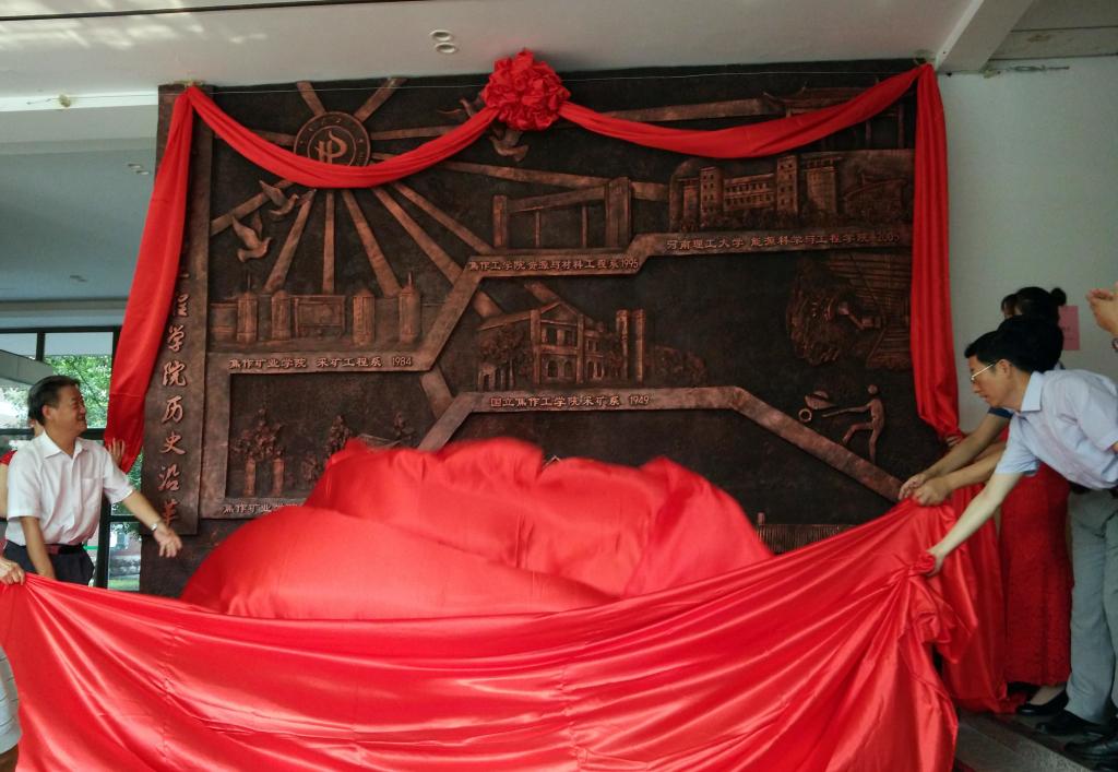 随后,校党委副书记安士伟,副校长周英,安阳工学院校长景国勋、原采矿系党总支书记张明共同为浮雕墙揭幕。