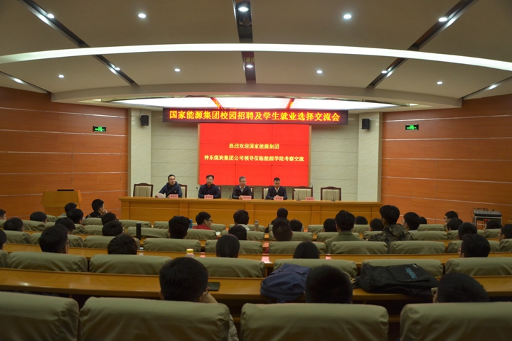 11月19日下午,国家能源集团校园招聘及学生就业选择交流会在新葡萄8883官网AMG104学术报告厅举行,国家能源集团神东煤炭集团领导高文才、郭永斌、贾连鑫,能源学院党委副书记阎俊豪以及相关专业各年级学生百余人参加了此次交流会。交流会由阎俊豪主持。