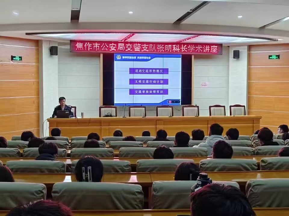 交通安全,教育为先。为进一步做好交通安全宣传教育工作,切实提升学生交通文明意识。3月17日晚,学院邀请焦作市公安局交警支队张明科长在学院104学术报告厅作墨金讲堂第一期的讲座。讲座由交通工程系主任郭保华主持。