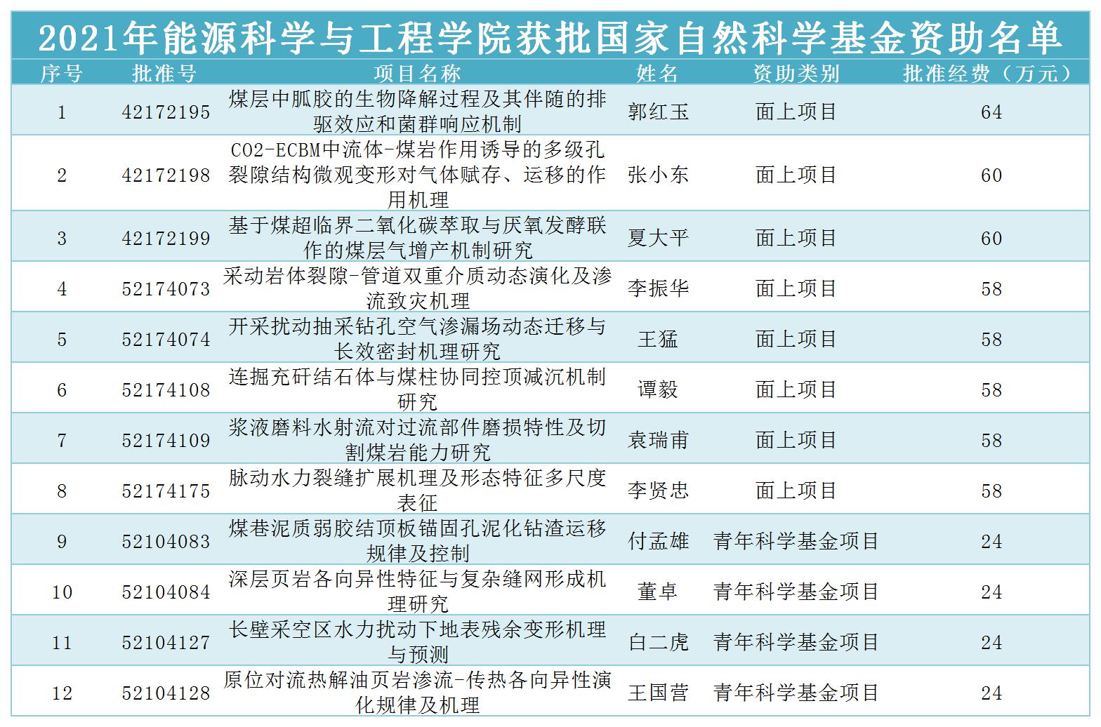 8月18日,2021年度国家自然科学基金资助项目结果公布,学院喜获12项国家自然科学基金资助。其中面上项目8项,青年科学基金项目4项,共获科研经费570万元。2021年学院共申报36项(面上26项,青年10项),青年基金资助率高达40%,总资助率达33.3%(全国平均资助率16.6%),资助数量和资助率创新高。在此,特向获得资助的项目负责人及团队表示祝贺!