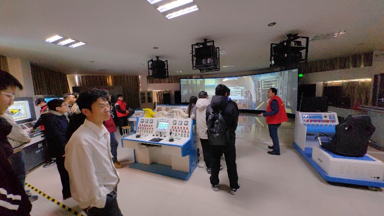 上午9:00点左右,活动正式开始。实验中心老师带领研究生们依次参观了现代化矿井综合模型室、综采综掘实训室及三维虚拟仿真实验室。在现代化矿井综合模型室,实验老师借助设备配套动作及LED灯光演示,为研究生们详细展示了当代煤矿采掘方法、技术及主流装备,包括采区、条带、盘区等采准方式以及普采、综采、放顶煤、大采高、充填开采等多种采煤工艺,使他们对煤矿开采系统及回采工艺有了宏观的认识。通过综采综掘实训室,借助综合机械化采煤、掘进的仿真工作面,以实操的方式为他们详细演示了巷道掘进过程、支护方式、工作面开采、采煤机智能远程控制等内容,使他们对煤矿系统的核心流程有了深入细致的了解;通过三维虚拟仿真实验室,借助三维动画、虚拟现实等技术,以交互式的仿真方式为他们详细演示了采煤工艺过程、罐笼及箕斗的模拟提升、综掘机的虚拟仿真操作、掘进工艺的模拟实验等内容,全景展示了煤矿的核心生产系统,加深了他们对专业知识的理解。本次活动持续了大约2个小时。
