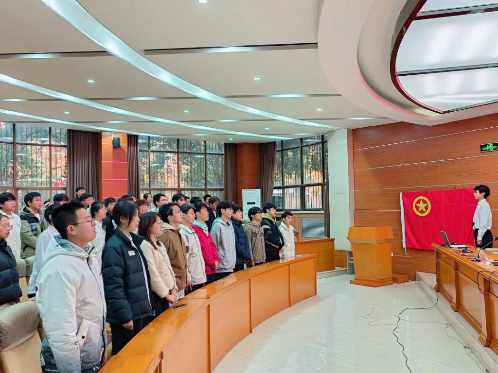 邵水军发言,他向“青马工程”第三期结业成员和第四期新成员表示祝贺,并为学员们阐释了青马工程对于团学骨干培养和学院发展的重要意义,号召每一位青马班学员要立志成为马克思主义的坚定信仰者、忠实实践者和有力传播者。邵水军以哈尔滨工业大学的保研明星宿舍为例,呼吁成员们以个人带动宿舍、宿舍带动班级、班级带动学院乃至学院带动整个学校,成为新时代积极向上有鸿鹄之志的青年马克思主义者。最后邵水军向青马班学员提出殷切希望,希望学员们要学有所获、学有所思、学有所行,立志成为一名马克思主义的坚定信仰者、忠实实践者和有力传播者。